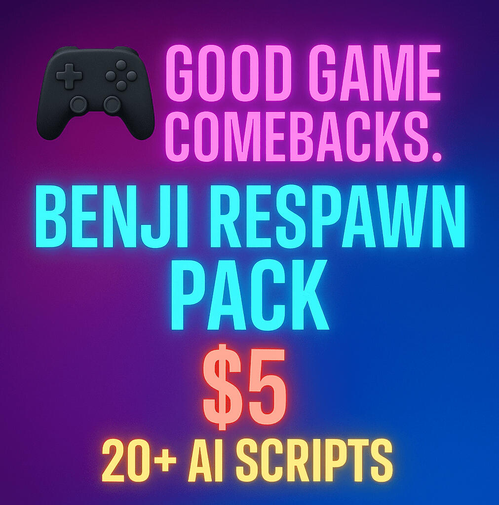 20+ clever, gaming-focused AI Scripts for just $5. Flip toxic lobby insults into playful comebacksโso you stay cool, funny, and unbothered after every match.